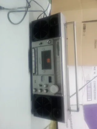Radio vintage con reproductor de cassette. .la cassetta va a rilento - Diseño clásico en color plateado. - Altavoces integrados.