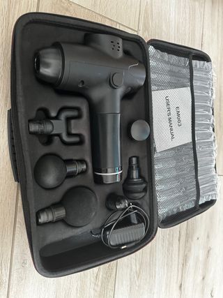 Pistola massaggiante con 6 differenti testine Tenuta molto bene Batteria ancora come nuova