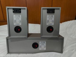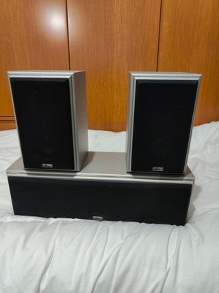 Sistema de sonido CAOS. - Due casse argentate. - Subwoofer nero.
