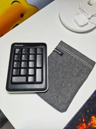 Tastierino numerico Microsoft Bluetooth, ideale per completare la tua postazione. - Design compatto e moderno. - Connessione Bluetooth per una maggiore libertà di movimento. - Compreso di custodia originale e batteria