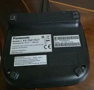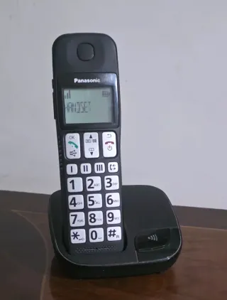 Telefono fisso cordless Panasonic di colore nero. - Display LCD. - Tastiera numerica. - Base di ricarica inclusa.