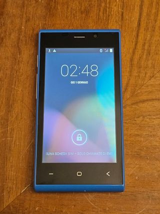 Smartphone 772 colore azzurro con fotocamera. Schermo touche e installato androi Kit Kat 4.4.2 Dual core, schermo 4" e memoria ampliabile con microsd. Wifi e bluetooth Compresi batteria rimovibile, cavo e alimentatore. Nuovo, pellicola ancora attaccata allo schermo.
