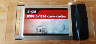 Scheda ZIGA USB2.0+1394 Combo CardBus per PC portatile da usare per la connessione degli apparecchi multimediali come la videocamera. Perfettamente integro e ben conservato nella scatola originale con i cd di installazione e tutti gli accessori, inclusi i 3 cavetti. Il tutto come da foto.