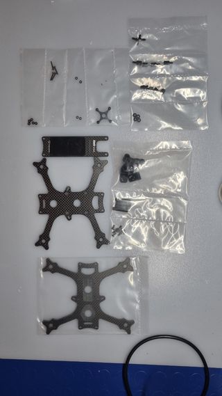 Vendo telaio in carbonio per drone FPV. Perfetto per chi cerca un frame robusto e leggero. - 2 plate inferiori in carbonio incluse. - Colore nero. - Ottimo stato. - Usato pochissimo