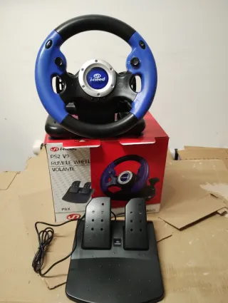 Volante da gaming i-need V9 per PlayStation 2, completo di pedali e cambio. - Volante con cambio manuale e paddle - Pedali inclusi. - Compatibile con PS2.