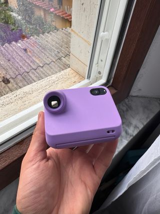 Fotocamera istantanea Polaroid in un vivace colore viola, con un tocco di arcobaleno sul davanti. Un design moderno e divertente per catturare i tuoi momenti speciali. - Design compatto e facile da usare. - Dettaglio arcobaleno colorato. -Senza scatola