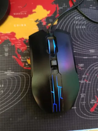 Mouse cablato con illuminazione LED. - Design ergonomico per un comfort prolungato. - Rotellina di scorrimento centrale. - Illuminazione a LED blu. - Cavo di connessione USB.