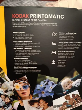 Instant camera Kodak nuova mai aperta. Stampa instantanea di foto a colori 2x3, non necessario collegamento al PC. Incluso 2 carte fotografiche.