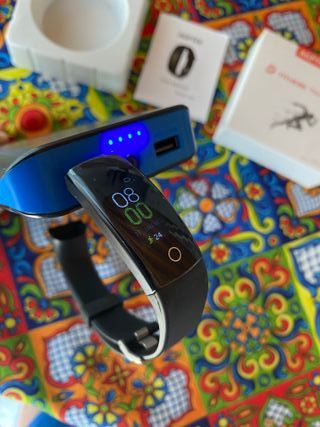 Vendo Dual Time Smartwatch - Fitness Tracker della SEICH Lo smartwatch è Ibrido, cassa classica molto resistente con un display all'interno. Collegabile al cellulare tramite apposita App (iOS oppure Android via Bluetooth). Contapassi, cardiofrequenzimetro, contacalorie. Notifica e controllo di chiamata in arrivo e messaggi. Si ricarica tramite la basetta USB in dotazione. Ha ancora la pellicola protettiva originale sul Display. Acceso solo per fare le foto. Vendo perchè ricevuto in regalo e mai utilizzato.