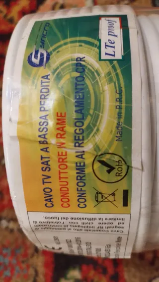 Cavo coassiale per passaggio di segnali RF, ideale per costruzioni ed opere civili. - Conduttore in rame. - Conforme al Regolamento CPR. - LTE proof. - Made in P.R.C. - RoHS.