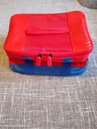Buone condizioni, colori Mario Bros. Divisori removibili con velcro. Dimensioni 24x20x13