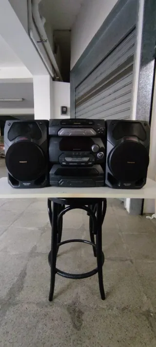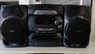 Impianto stereo Panasonic di colore nero. - Sistema audio con casse. - Lettore CD
