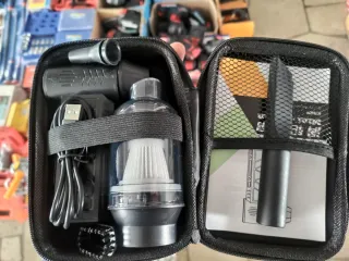 Kit per la pulizia di dispositivi elettronici, include un mini compressore e un aspirapolvere. - Accessori per la pulizia inclusi. - Cavo di ricarica USB. - Custodia per il trasporto.
