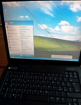 Notebook HP Compaq nx6110 in colore nero. Vendo computer usato funzionante batteria funzionante con caricatore pellicola display da sostituire come in foto