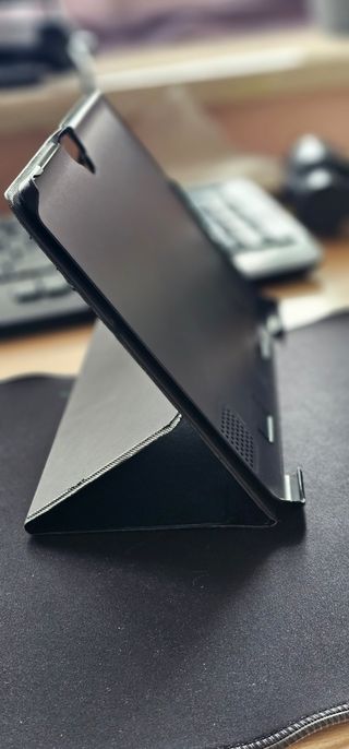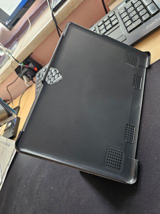 Cover tablet 10" ecopelle e plastica + pellicola schermo. Telecamera centrale, praticamente nuovo