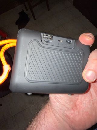 Cassa Bluetooth di colore nero, con una finitura testurizzata. - Porta USB - Porta TF - Ingresso DC 5V - Pulsante ON/OFF Viene ceduta senza scatola né caricabatterie