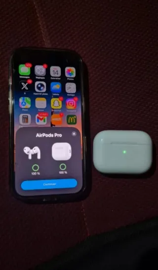 Cuffie wireless Bluetooth Apple AirPods Pro. - Custodia di ricarica inclusa. - Indicatore di carica al 100% per auricolari e custodia.