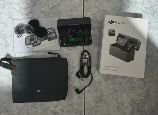 DJI Mic Mini (2 TX + 1 RX + custodia di ricarica). Prodotto in ottime condizioni e perfettamente funzionante. Microfono e accessori completi come da confezione originale. La custodia e il ricevitore presentano solo lievi segni superficiali dovuti alla normale manipolazione, puramente estetici. La scatola ha piccoli segni esterni (ammaccature e tracce da nastro/etichette). Microfono wireless ultraleggero con audio di alta qualità, cancellazione del rumore a due livelli, portata fino a 400 m e autonomia fino a 48 ore con charging case. In alternativa è possibile aggiungere DJI Mic 2. Ritiro a Rovigo o Badia Polesine