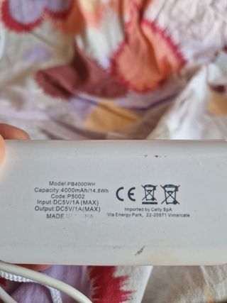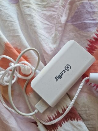 Power bank Celly bianca, leggera e compatta. - Perfetta per ricaricare i tuoi dispositivi in movimento. - Include cavo USB. - Presenta lievi segni di usura.
