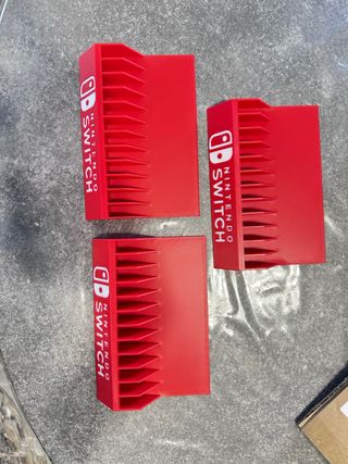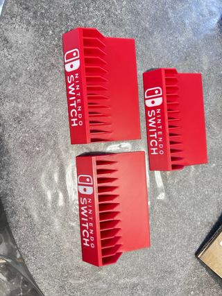Set di espositori per giochi Nintendo Switch. - Colore rosso vivace. - Design a pettine per un facile accesso ai giochi. - Logo Nintendo Switch stampato. - 3 pezzi vendo anche separati