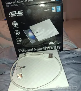 Masterizzatore esterno DVD-RW ASUS, modello SDRW-08D2S-U LITE. - Design sottile e compatto. - Compatibile con Windows e Mac. - Include software Power2Go 8. - Offre crittografia dei dischi. - Include 12 mesi di WebStorage gratuito.