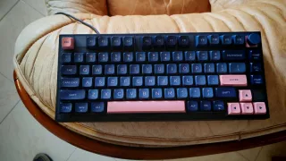 Tastiera meccanica Epomaker Skyloong GK75 con un design elegante. Connessione USB, Con pinza per estrarre i tasti e ulteriori tasti aggiuntivi sostituibili - Layout compatto. - Tasti con finitura rosa e blu. - Struttura nera resistente. Disponibile per ulteriori foto o informazioni