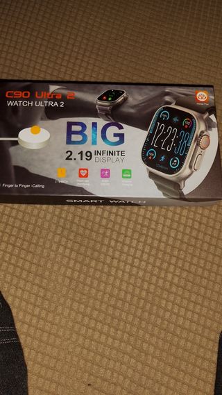 Vendo smartwatch C90 Ultra 2, in ottime condizioni. - Display grande 2.19 pollici. - Include caricatore e cinturino arancione. - Design elegante e moderno.