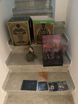 Edizione God Collector's Edition di Assassin's Creed Origins per Xbox One. La confezione include elementi da collezione. - Statuetta. - Steelbook. - Artbook. - Copia del gioco Assassin's Creed Origins. - Mappa del mondo di gioco. (La versione non contiene disco ma è digitale, Codice non so se riscattato, difetti sulla cover della scatola visibile in foto) comprate ciò che vedete.