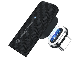 Adattatore magnetico USB-C con connettore a 24 pin e design ad angolo retto. La finitura nera presenta una trama intrecciata e un piccolo indicatore luminoso blu.Vendo Adattatore magnetico usbc ad angolo retto 24pin 240w esten da maschio a femmina . Nuovo con scatola. Adattatore magnetico USBC da femmina in entrata a maschio in uscita ad angolo retto. 240w , ricarica rapida 40gbps e video 4k . La parte del maschio si può staccare e attaccare magneticamente per un ulteriore comodità. Perfetto per telefono ,laptop, tablet , consolle , cuffie mentre si util - Connettore USB-C - 24 pin - Design ad angolo retto - Indicatore luminoso blu