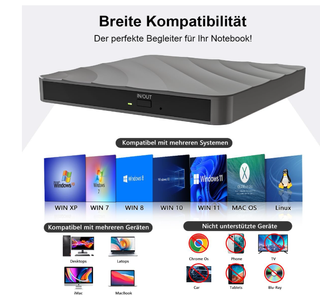 Lettore CD/DVD esterno portatile, ideale per PC.- Design moderno con finitura ondulata. - Connessione USB per facile integrazione. Vendo Lettore CD/DVD esterno per PC, masterizzatore portatile windows , mac , linux. NON è Bluray . Grigio, nuovo con scatola e cavo . Lettore DVD usb 3.0 veloce con type c . Trasferimenti fino a 5 gbps. Basta collegarlo al PC con usb a in dotazione. Funziona come masterizzatore CD e DVD. Funziona con windows da vista a 11 . Funziona con macOs , macbook , mac mini e linux . Si alimenta direttamente dal PC quindi nessuna alimentazione esterna. Si collega e funziona senza s - Vassoio per CD/DVD estraibile.