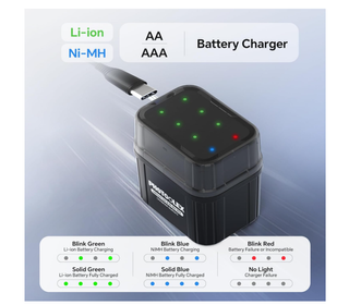 Caricabatterie universale per batterie ricaricabili. - Compatibile con batterie Lithium-ion e Ni-MH. Include 4 batterie AA da 1300mAh. - Include 1 batteria AAA da 3000mAh. Vendo Carica batterie ibrido con batterie 4AA e 4AAA 1.5v con custodia magnetica e cavo. Le batterie sono 8 totali 4aa e 4aaa a litio le AAA hanno 3000mwh e le AA 1300mwh . Quindi una grande potenza e durata . Quello ovviamente dipende dagli utilizzi fatti . Hanno fino a 1600 cicli di ricarica e 12 anni di conservazione sono adatte a prodotti ad alto consumo energetico ad esempio macchine fotografiche professionali , macchine radiocom - Design compatto e pratico.