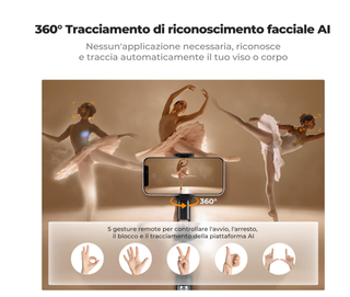 Bastone selfie estensibile fino a 180 cm, ideale per foto e video. - Funzione treppiede integrata.- Sistema di inseguimento automatico del soggetto. - Compatibile con action cam e smartphone.Vendo Bastone selfie 180cm tripode con seguimento automatico AI 360° , più luci e telecomando. Bastone selfie Multifunzione, professionale . Nuova con scatola e accessori. Il bastone ha una telecamera con IA integrata che segue a 360° il volto o la persona/e che registrano o fanno foto . È pieghevole e automatico. Ha inclusi 2 anelli lumonosi a ricaricabili da attaccare di lato o sopra . Ha i c - Telecomando incluso per un controllo a distanza.