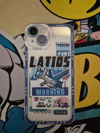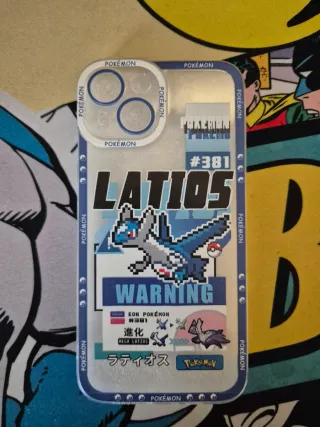 * Disponibili per altri modelli * Cover per iPhone 14 con design ispirato al Pokémon Latios. - Stampa dettagliata del Pokémon Latios in stile pixel art. - Numeri identificativi del Pokémon (#381). - Scritta WARNING e MEGA LATIOS. - Elementi grafici a tema Pokémon.