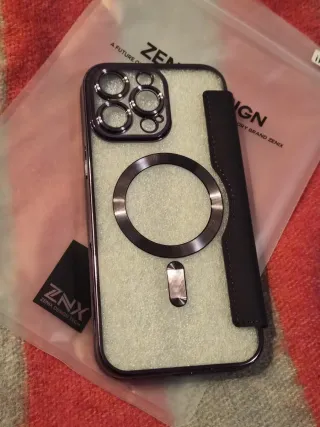 Custodia per iPhone 16. - Colore viola. - Design a libro con porta carte. - Materiale in similpelle.