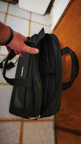 Vendo borsa a tracolla in buone condizioni, adatta sia al trasporto di notebook/tablet, ma anche cartelline e documenti. Lo scomparto interno presenta una divisione centrale che permette la divisione dei vari oggetti.