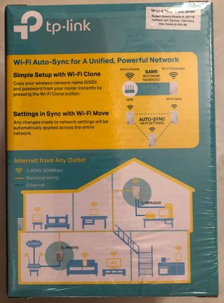 Powerline della marca tp-link, con Wi-Fi. Modello TL-WPA4220 KIT, 600Mbps. Nuovissimo.