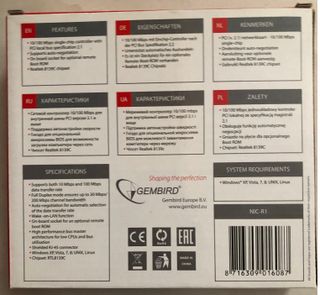 Scheda di rete PCI marca Gembird, 10/100 Mbps. Nuovissimo.