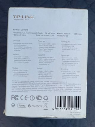 Router wireless portatile Tp-link 3G/3.75G modello TL-MR3020. Contiene le istruzioni e cavo usb