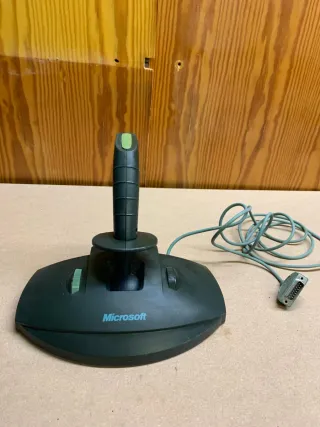 Joystick Microsoft con base ancha y palanca. - Diseño ergonómico. - Dos diales laterales. - Botón verde en la punta de la palanca. - Conector de 15 pines.