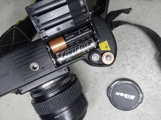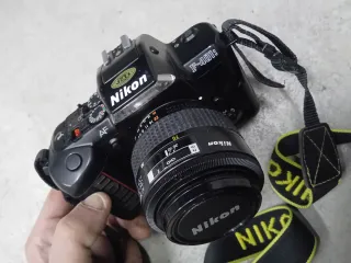 Macchina fotografica reflex analogica Nikon F-401s con obiettivo. - Obiettivo Nikon AF 35-70mm f/3.3-4.5 - Tracolla Nikon inclusa Usato funzionante, ha il gancetto di chiusura sportello rotto, è stata usata per anni tenendo chiuso lo sportellino con del nastro adesivo. Spedisco come in foto, ma senza batterie.