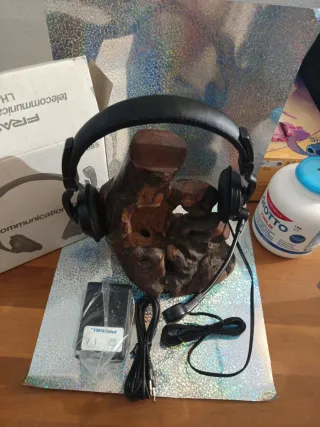 Cuffie per telecomunicazioni FRAEL. - Modello LH-085. - Design con microfono integrato.