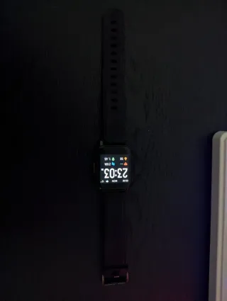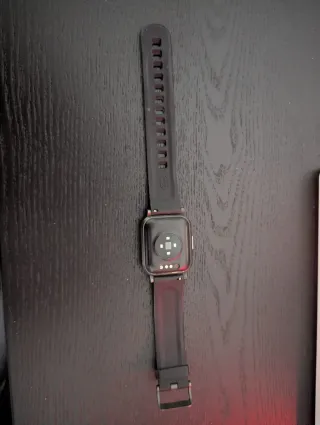 Smartwatch Xiaomi Haylou LS02 di colore nero. Vendo, compreso nel prezzo, altri due cinturini in metallo (oro rosa e argento) + cavo di ricarica - Cinturino regolabile in silicone. - Quadrante quadrato. - Sensore per il battito cardiaco sul retro.