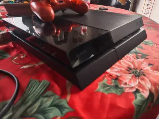 Console PlayStation 4 versione Fat in colorazione nera. Include un controller. - Console PlayStation 4 - Controller wireless non originale - Controller cablato non originale - Cavo di alimentazione - Cavo HDMI - Cavo USB per controller Il controller rosso è solo illustrativo per la foto della PlayStation