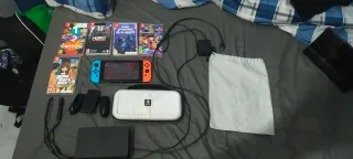Vendo Nintendo Switch completa di accessori e giochi. - Console Nintendo Switch - Joy-Con (L) e (R) blu e arancioni - Dock per Nintendo Switch - Cavo HDMI e alimentatore - Custodia protettiva bianca - Sacca portaoggetti - Giochi inclusi: Mario Kart 8 Deluxe, Grand Theft Auto, Metro 2033, Fortnite, Super Mario Odyssey