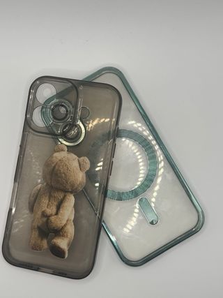 Cover per iPhone 16 con un simpatico orsetto e un anello MagSafe. - Cover trasparente con orsetto 3D. - Anello MagSafe integrato. - Bordi rinforzati.