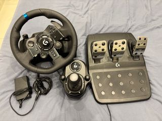 Set completo per il gaming con volante e cambio. - Volante con finitura in pelle. - Pedali in metallo. - Leva del cambio inclusa. Qualunque Info, non esitate a contattarmi🥰