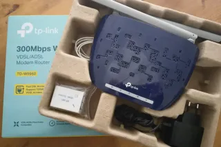 Vendo modem router TP-Link TD-W9960, ideale per connessioni VDSL e ADSL. Il dispositivo è in condizioni estetiche e funzionali perfette, pari al nuovo, utilizzato pochissimo e completo di scatola originale. Compatibile con standard VDSL2/ADSL2+/ADSL2/ADSL e funzionante con i principali provider (TIM, Vodafone, WindTre, Fastweb, ecc.). Ideale per streaming HD, navigazione fluida e smart working. Dotato di due antenne esterne che garantiscono un segnale stabile in tutta la casa. Protezione Firewall e Parental Control integrati. Installazione Rapida. Contenuto: Modem Router TD-W9960, alimentatore originale, cavo telefonico DSL, cavo