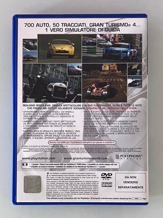 Gran Turismo 4 per Playstation 2. Il gioco si presenta in buone condizioni generali, la custodia risulta ottimo stato, il disco presenta imperfezioni sulla superfice che non pregiudicano comunque il corretto funzionamento del gioco. Completo di libretto, in lingua italiana.