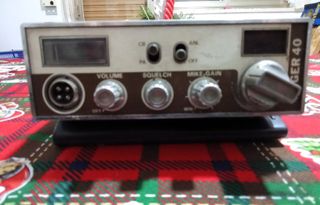 Ricetrasmettitore veicolare Tiger 40 con finiture beige e marroni. - Display digitale. - Manopole per Volume, Squelch e Mike Gain. - Pulsanti CB, PA, ANL e OFF.