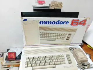 Scatola originale per il Commodore 64. - Scatola in cartone bianco con logo Commodore la scatola ha evidenti segni di usura causati dal tempo il commodore funziona perfettamente - Presenti informazioni di contatto Commodore in diverse lingue.
